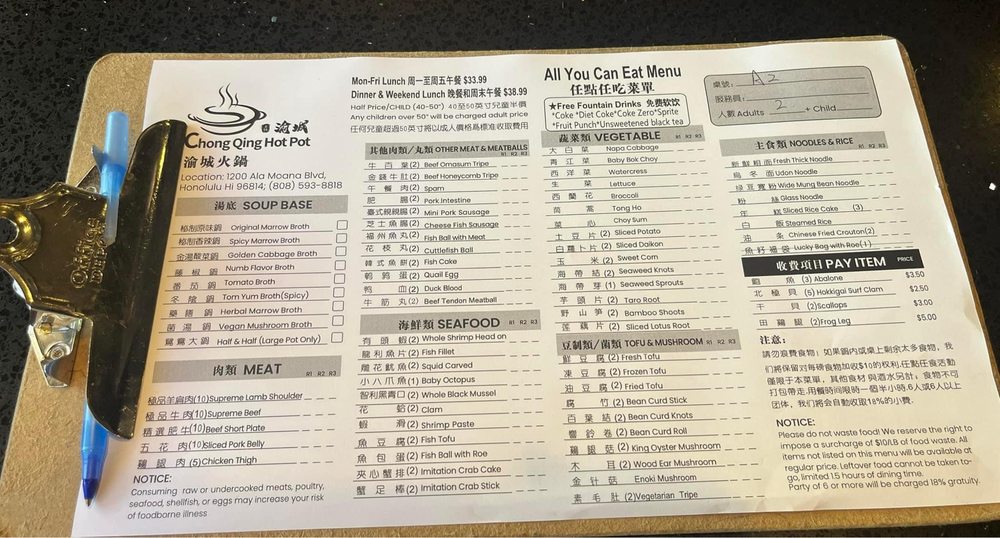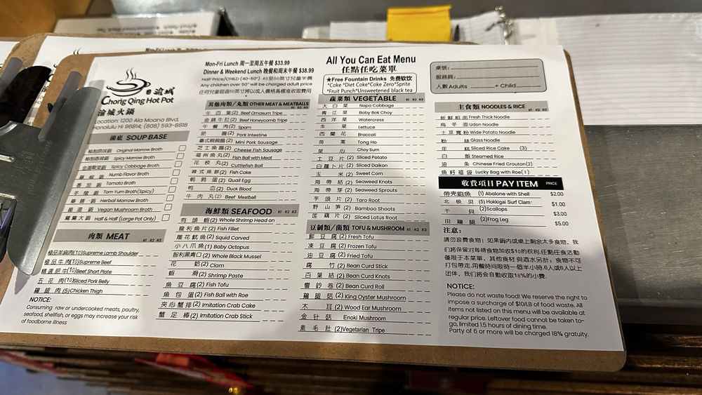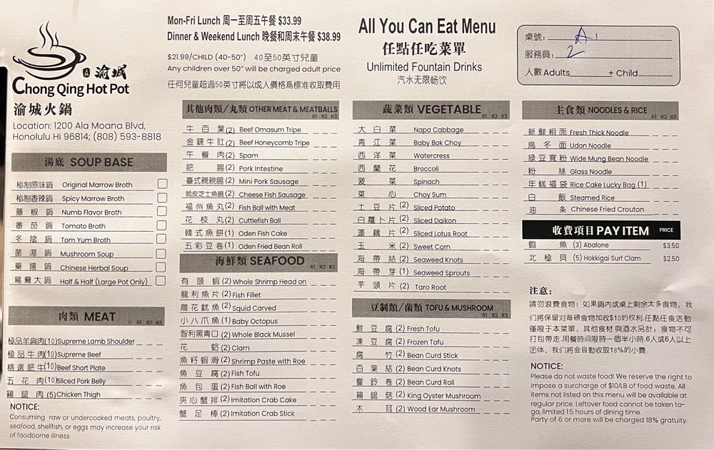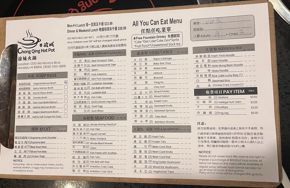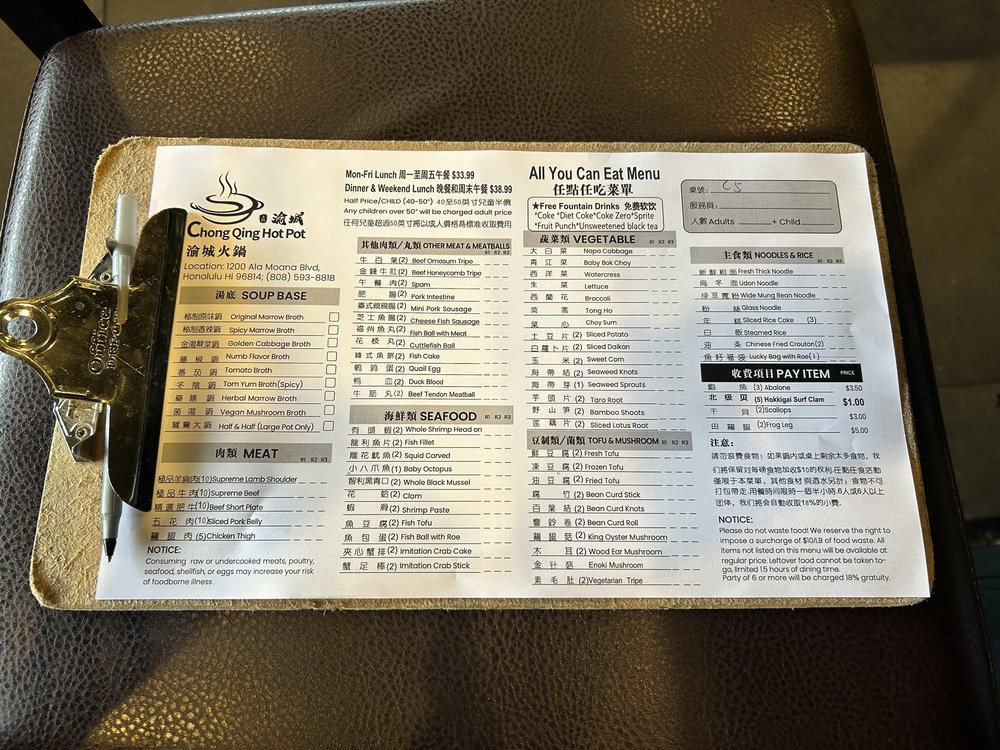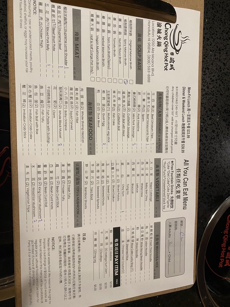 Welcome to Chong Qing Hot Pot, where the vibrant essence of Chinese cuisine comes alive through the joy of communal dining. Located at 1200 Ala Moana Blvd in Honolulu, this casual yet trendy establishment offers an extensive menu crafted for hot pot enthusiasts.