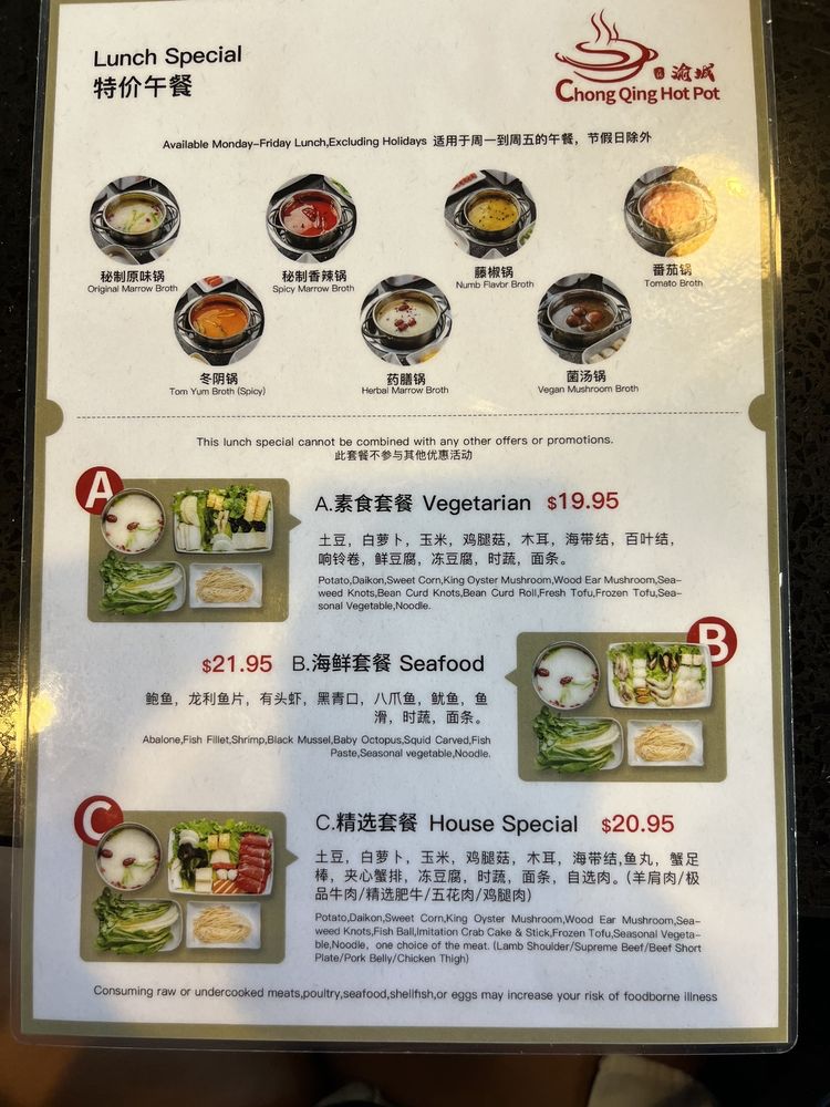 Whether you're stopping by for lunch, dinner, or a casual gathering, Chong Qing Hot Pot promises an unforgettable culinary adventure filled with flavor and camaraderie.